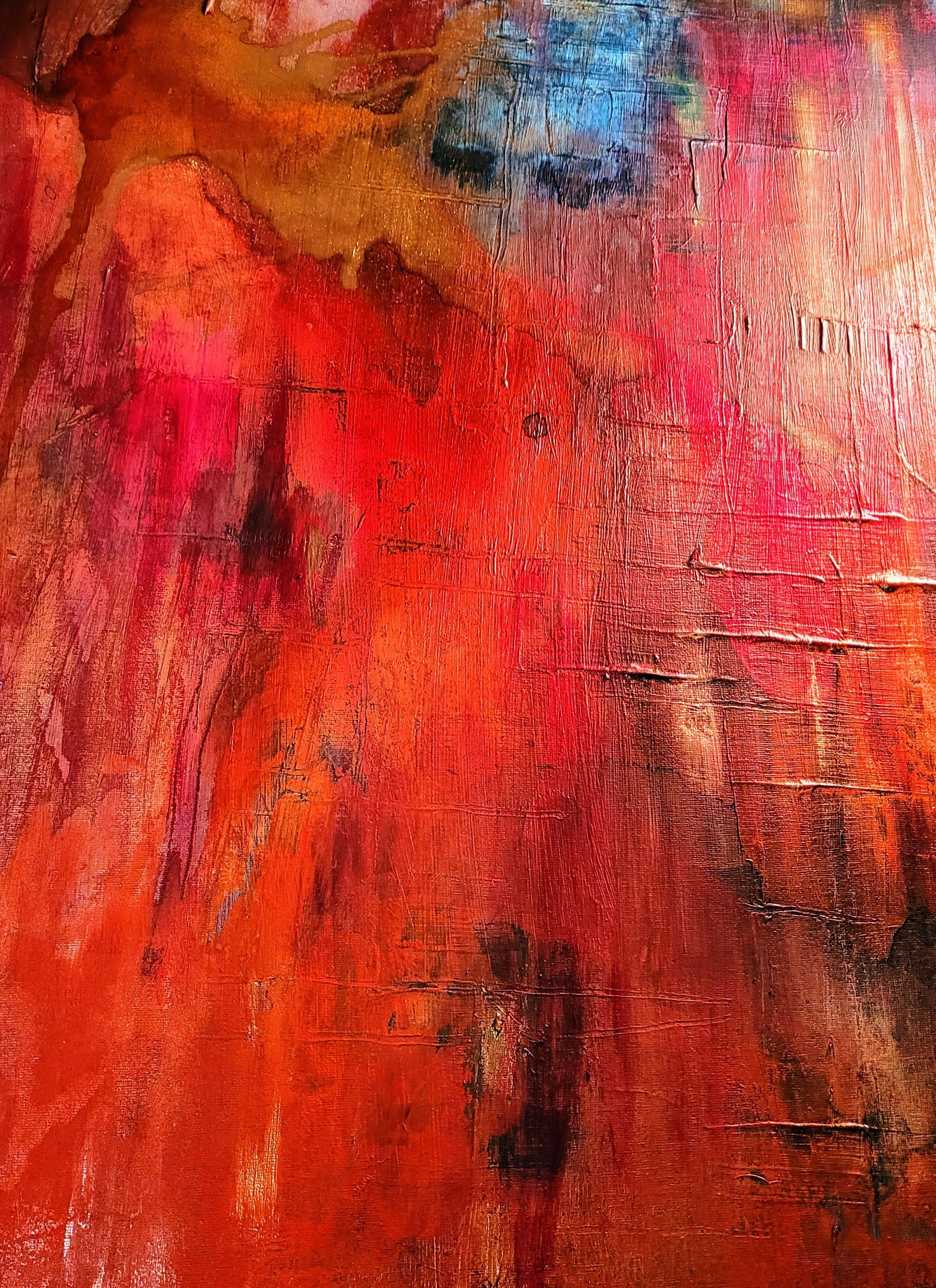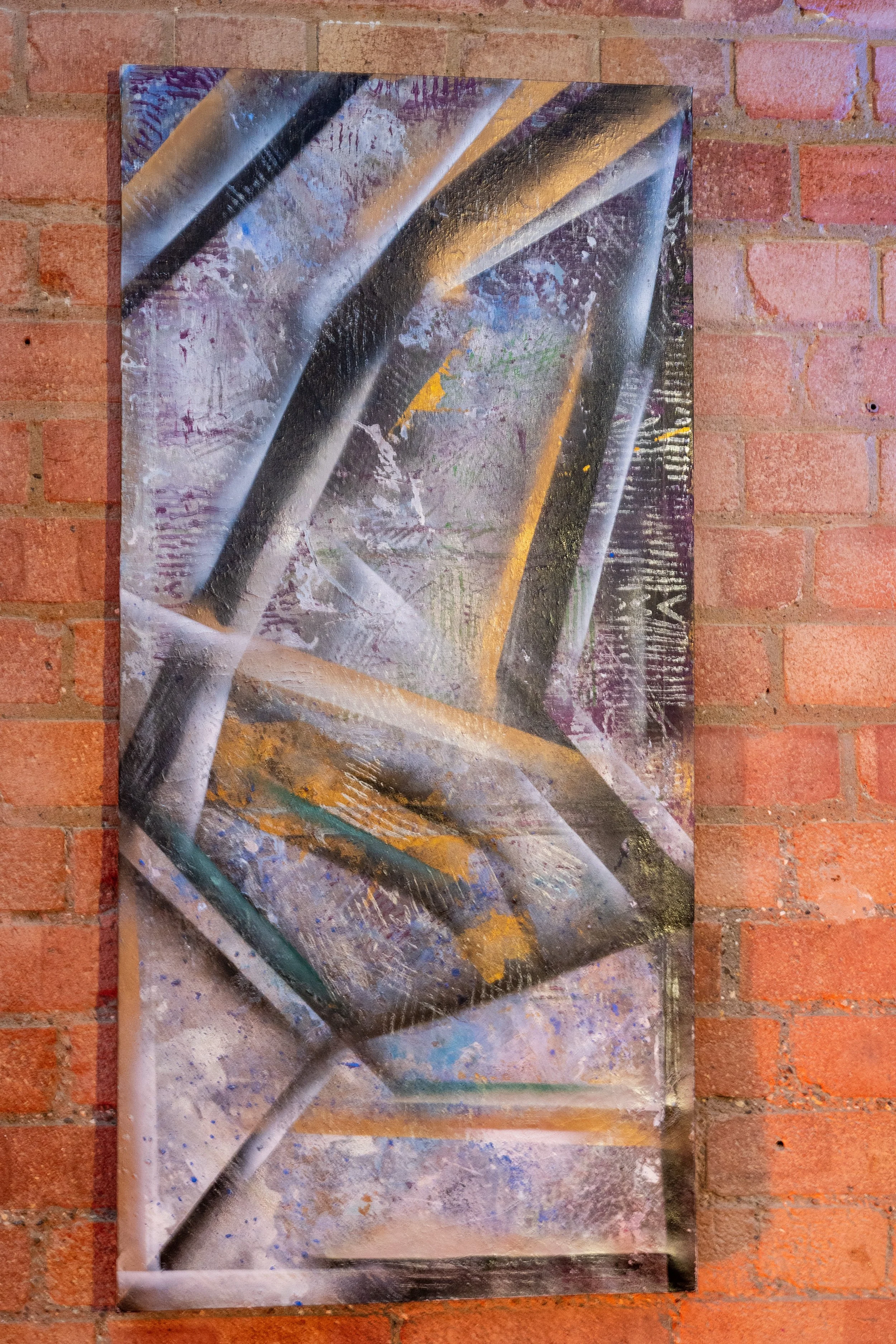 Taken from Shahina Jaffer’s multi-layered original Jagged Spaces, this repeat pattern captures the essence of the work’s depth — built on over 24 painted layers with metallic overlays designed to flex perspective. The result? A shifting surface that bends with the eye, sometimes appearing almost 3D.