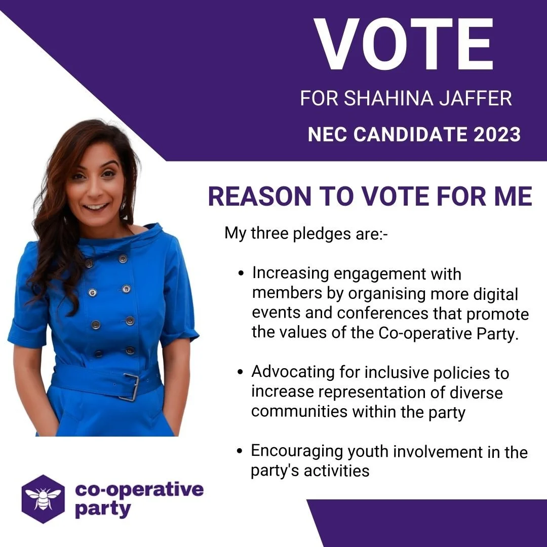 Co-operative Party BAME Council (2020): In September 2020, she was elected to the BAME Council of the Co-operative Party. This role involved advocating for Black, Asian, and Minority Ethnic members and promoting co-operative values—such as shared ownership and social responsibility—within the political sphere.