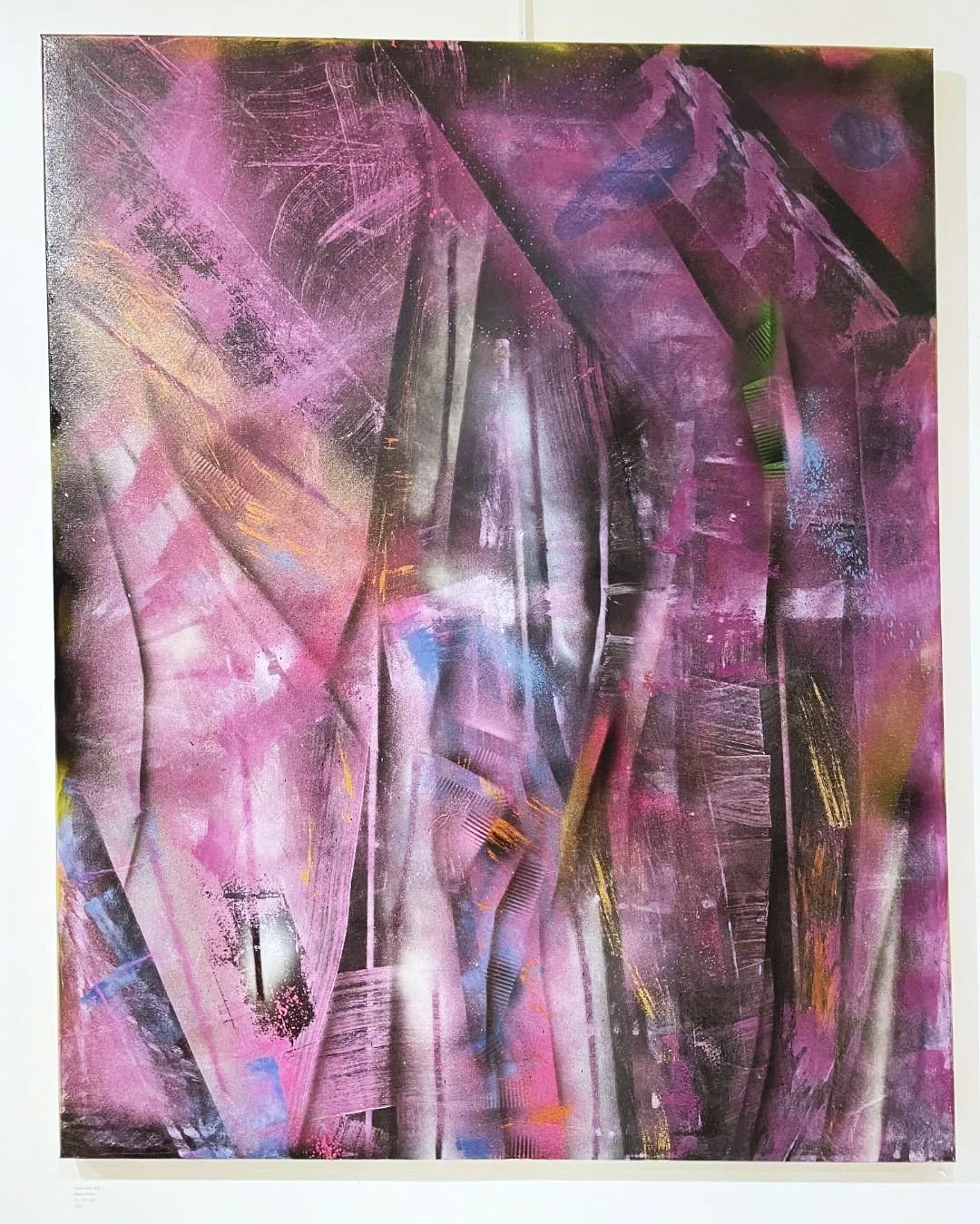 "Chromatic Seduction at 2 AM" invites viewers into a world where vibrant, shocking deep pink bone-like lines intertwine, creating a mesmerizing dance of contrasts. This intriguing painting exudes an enigmatic aura that challenges the boundaries of perception. As one explores its depths, they will uncover the subtle interplay of light and shadow, revealing a symphony of hidden details that emerge in the quietude of night.